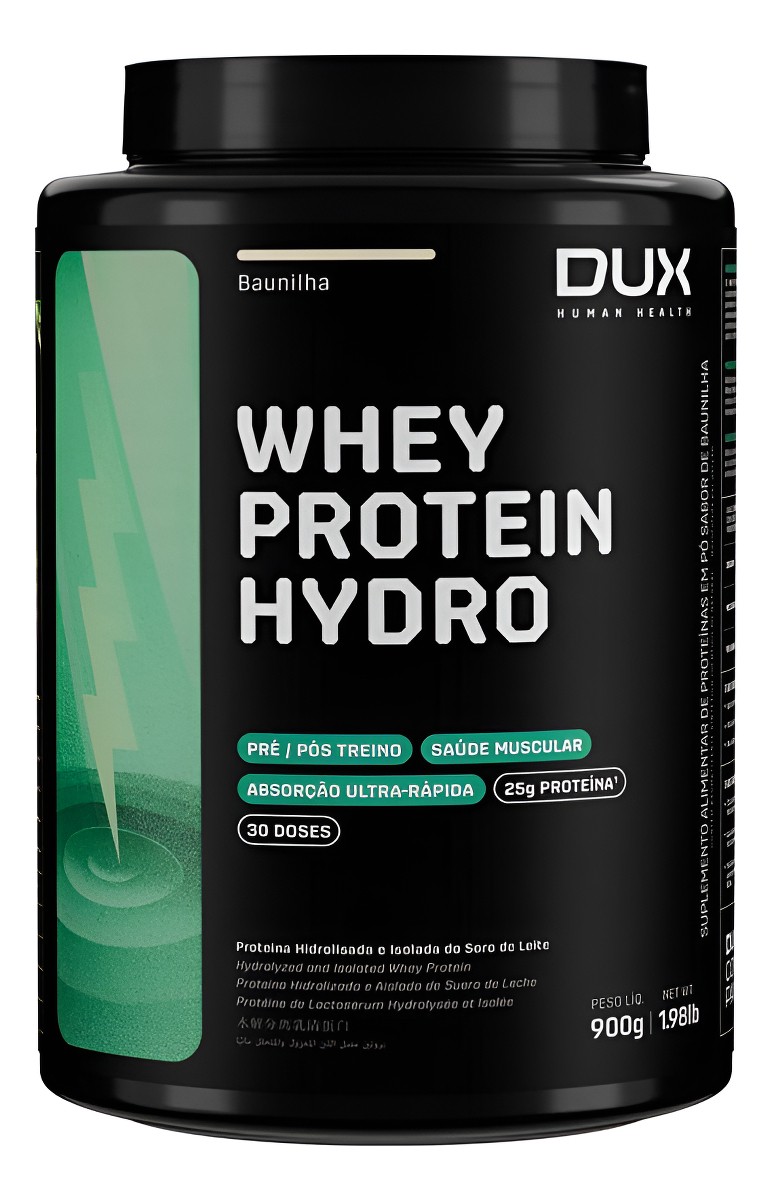 O Whey Protein Hydro DUX® transporta proteínas e aminoácidos à musculatura mais rapidamente que os outros Wheys, sendo ideal para o Pré e Pós-treino, pois acelera o processo de reconstrução muscular. - Matéria-prima de alta qualidade obtida pelo processo de filtração crossflow; - Alta taxa de hidrólise: as moléculas da proteína são fragmentadas em pedaços menores (peptídeos), que são absorvidos mais rapidamente; - Aporte excepcional de aminoácidos, contendo 6g de BCAAs, 2,5g de glutamina e 2,7g de leucina. Possuindo baixo teor de gorduras e carboidratos. - O nome diz tudo: Whey Protein Hydro 100% puro, com transparência total, do nome do produto à lista de ingredientes; - Não contém goma xantana, complexos vitamínicos à base de maltodextrina, espessantes, estabilizantes, conservantes ou qualquer outro ingrediente inferior; - Contém corantes 100% naturais, sem ingredientes artificiais. Proteína moderna, desenvolvida por especialistas, para: - Atletas de treinos com carga (bodybuilding, CrossFit® , LPO, funcional); - Atletas de alta performance (triathlon, corrida, natação, artes marciais); - Pessoas que buscam uma proteína ultrapura e pré-digerida reconhecida por sua qualidade. Se há um nutriente indispensável é a proteína. Ela é feita de aminoácidos, que são os blocos de construção do nosso corpo. A proteína do soro do leite, em inglês “Whey Protein”, é uma das fontes de aminoácidos de melhor absorção, maior até que o frango ou peixe. Isso torna o Whey uma forma conveniente de ingerir proteína, melhorando a saúde, o bem-estar e os resultados dos treinos.